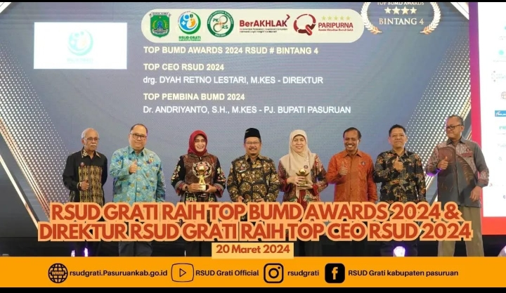 Artikel RSUD GRATI TOP BUMD Bintang 4 Dan Direkturnya drg. Dyah Retno Lestari TOP CEO RSUD 2024 pertama kali tampil pada Harian Merdeka Post.